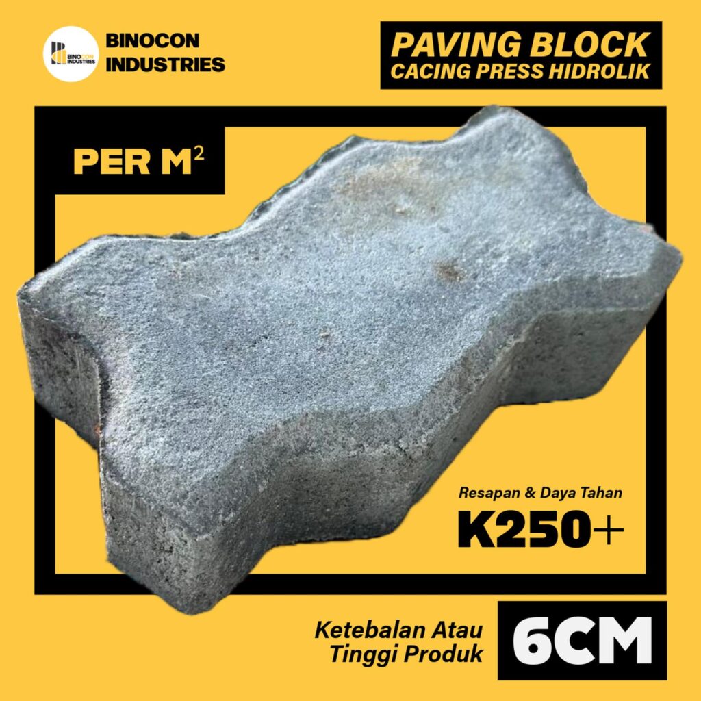 Binocon Industries Paving Block Cacing 6cm Abu Press Hidrolik 11,2×22,5cm Ketebalan 6cm K250 s/d K300 Resapan & Daya Tahan Tinggi. – K250