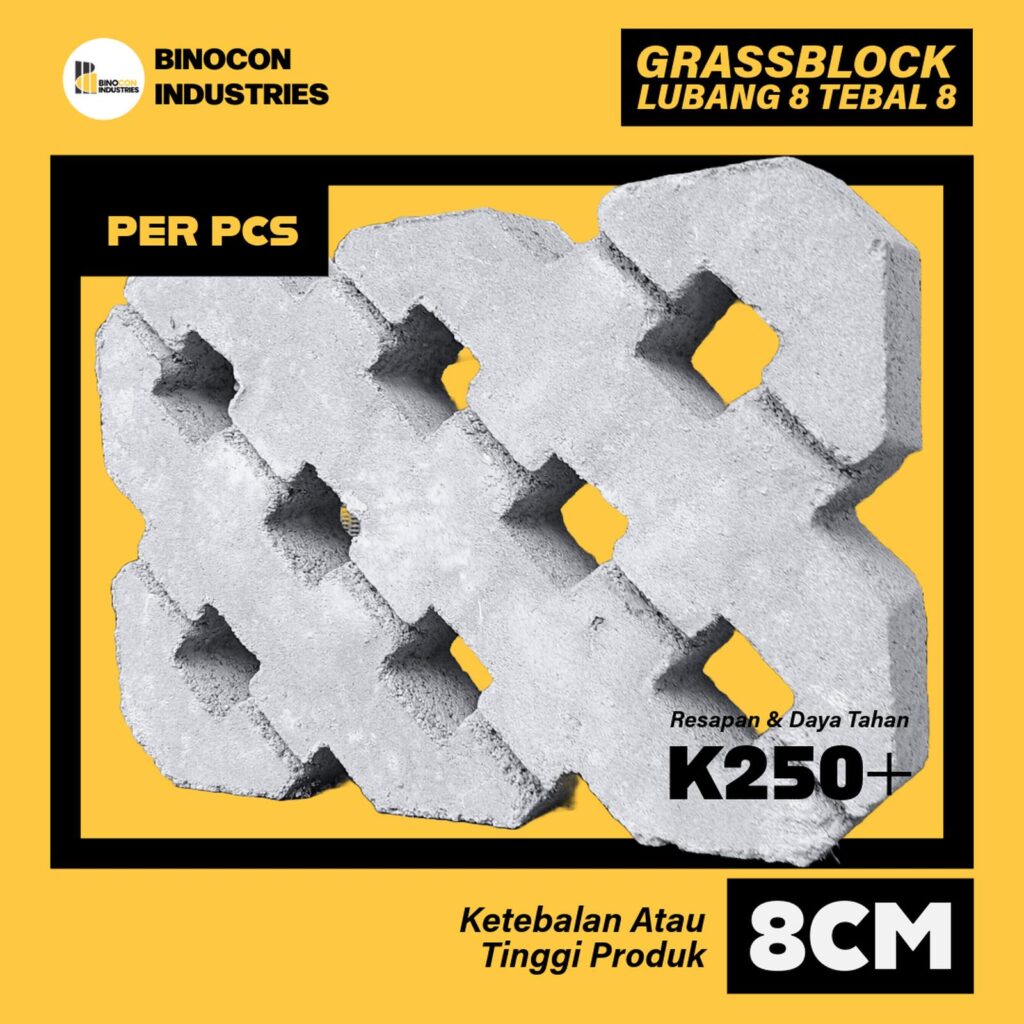 Binocon Industries Paving Block Cacing 8cm Abu Press Hidrolik K-250 s/d K-300 11,2×22,5cm Tebal 8cm Warna Abu-abu 39 Pcs/M2 – K250